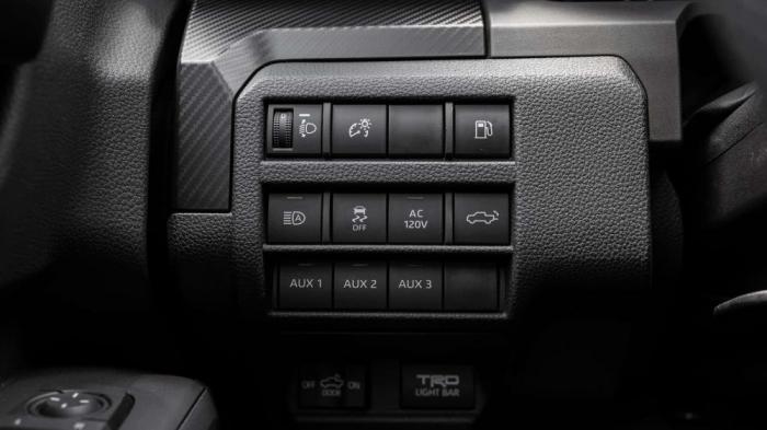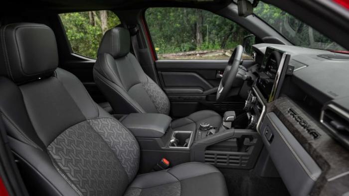 В ходовой части применят спортивные амортизаторы Fox Quick Switch и оптимизированные рычаги, а стабилизатор поперечной устойчивости снабдят возможностью отключения. В салоне Tacoma TRD Pro появятся особо комфортные кресла IsoDynamic Performance со встроенной системой демпфирования на базе регулируемых амортизаторов.