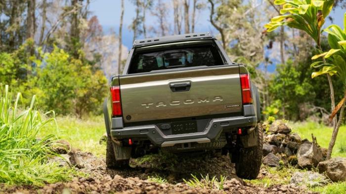 Самыми внедорожными модификациями должны стать версии Trailhunter и TRD Pro, причём обе будут поставляться только с гибридным приводом. Но если первая ориентирована на неспешные путешествия вне асфальта, то вторая предназначена любителям скоростной езды по бездорожью. Tacoma TRD Pro получит оригинальный капот, расширенные колёсные арки и дополнительную оптику в бампере, а также защиту днища и 18-дюймовые диски с 33-дюймовой резиной.