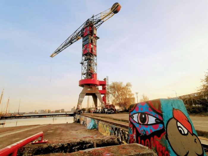 В Амстердаме есть подъёмный кран, а внутри этого крана есть пятизвёздочный отель. Апартаменты расположены на высоте в 35, 40 и 45 метров.