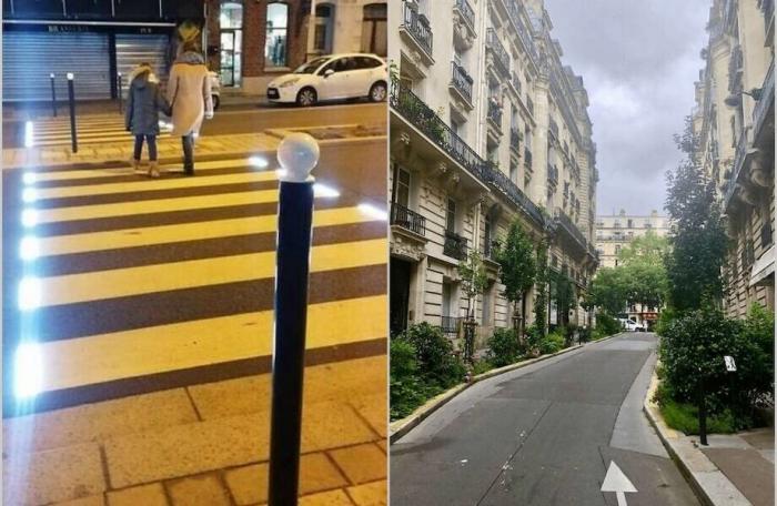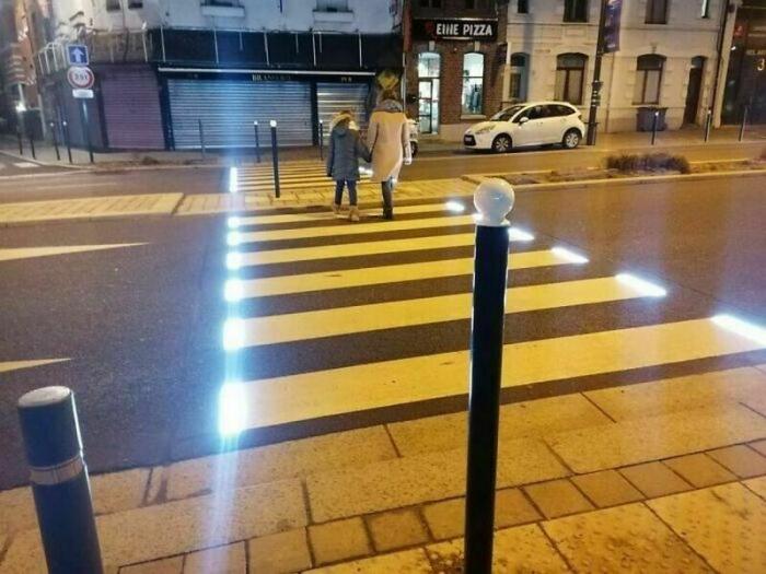 Пешеходный переход во Франции, который подсвечивается, если по нему идут люди