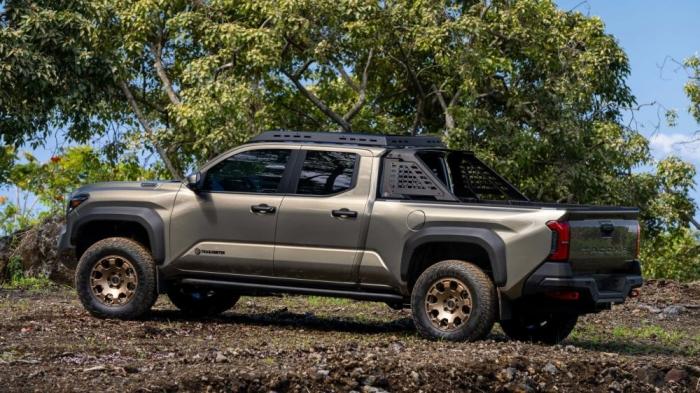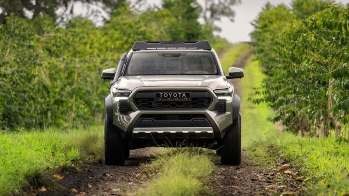 Toyota Tacoma Trailhunter подготовлена при помощи компонентов авторитетных фирм ARB и Old Man Emu. Она также отличается более агрессивной внешностью, но получила, к примеру, силовой задний бампер, шноркель, буксировочные проушины и встроенный компрессор для накачки 33-дюймовых шин. Подвеску этой модификации также доработают с применением альтернативных амортизаторов и рычагов.